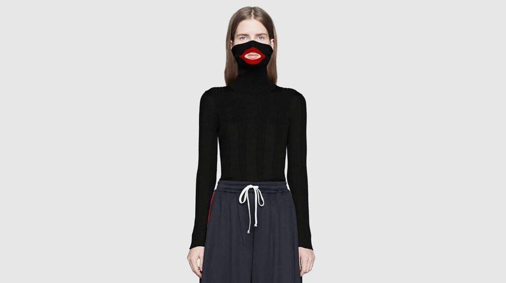 2019年2月,古馳一款黑色高領毛衣因設計類似「黑臉」(blackface)而受到猛烈抨擊。這件毛衣能拉高至模特兒嘴巴,並在嘴部位置設計了鮮紅的嘴唇剪裁開口。這強烈喚起了美國歷史上對非裔族群極度侮辱的「黑臉滑稽戲」形象——即白人演員將臉塗黑,以誇張、醜化的方式扮演非裔角色,強化種族歧視觀念。